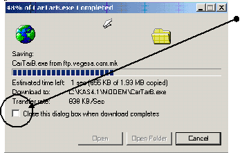 Close this dialog box when download complete да биде дештиклирана (празна).