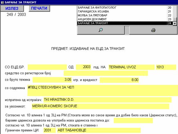 | Во слободните царински обрасци има додаден нов образец. Работата со него е иста како и со останатите слободни обрасци на коишто сте навикнати. |
