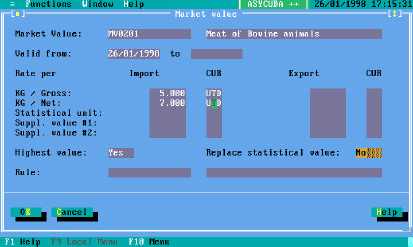 each Supplementary Unit of quantity. For more complex calculations, the Market Value window has