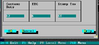 Duty and Tax rates applicable to the commodity Code must be inserted using this screen. An actual