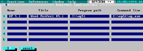 ASYCUDA++ User Modules have a menu option called 'References' on the top status line of the