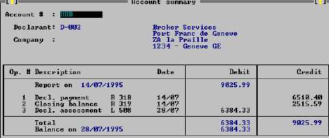 credit amounts and totals. The next screen is an example of an account summary report. (The