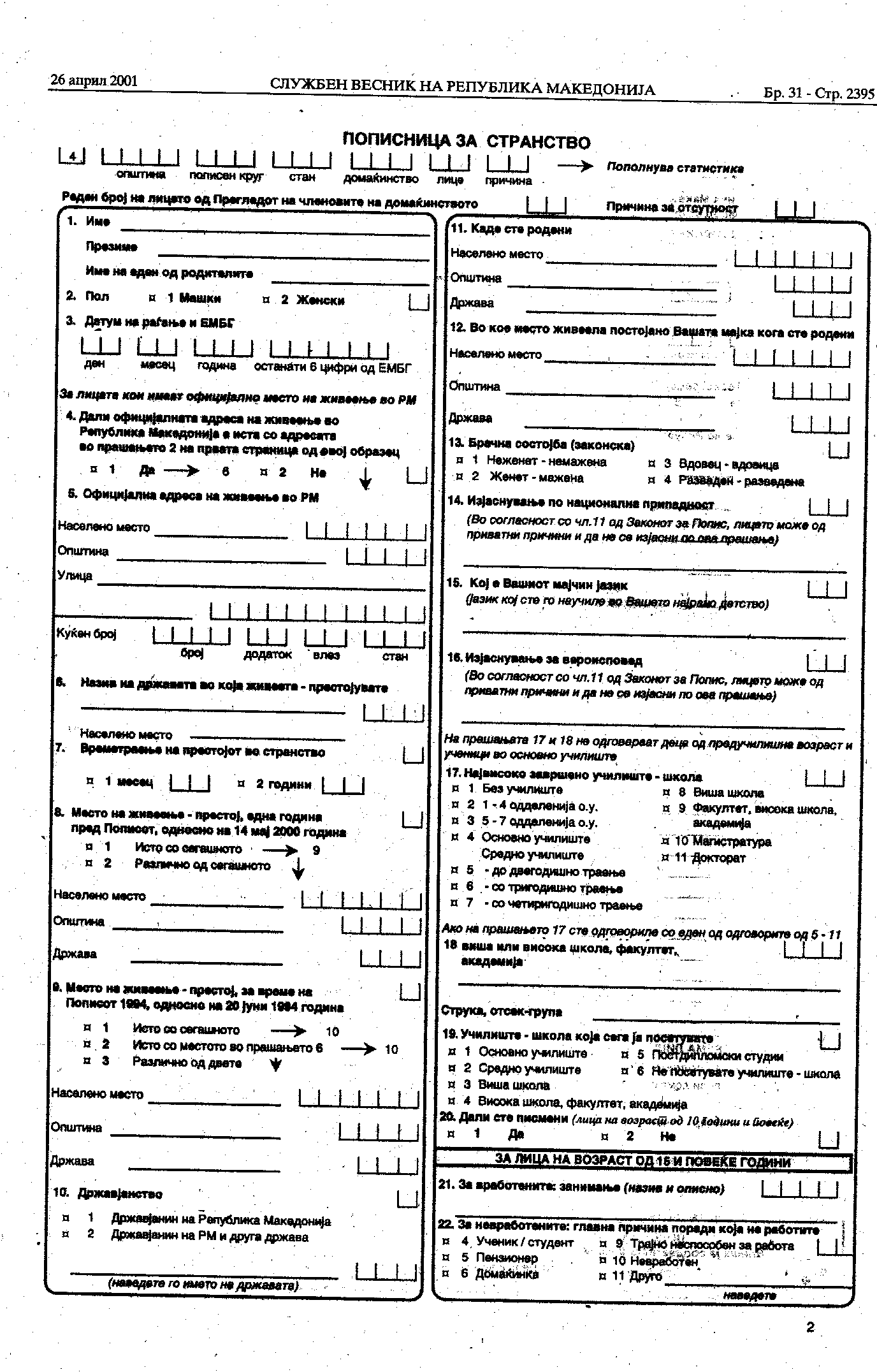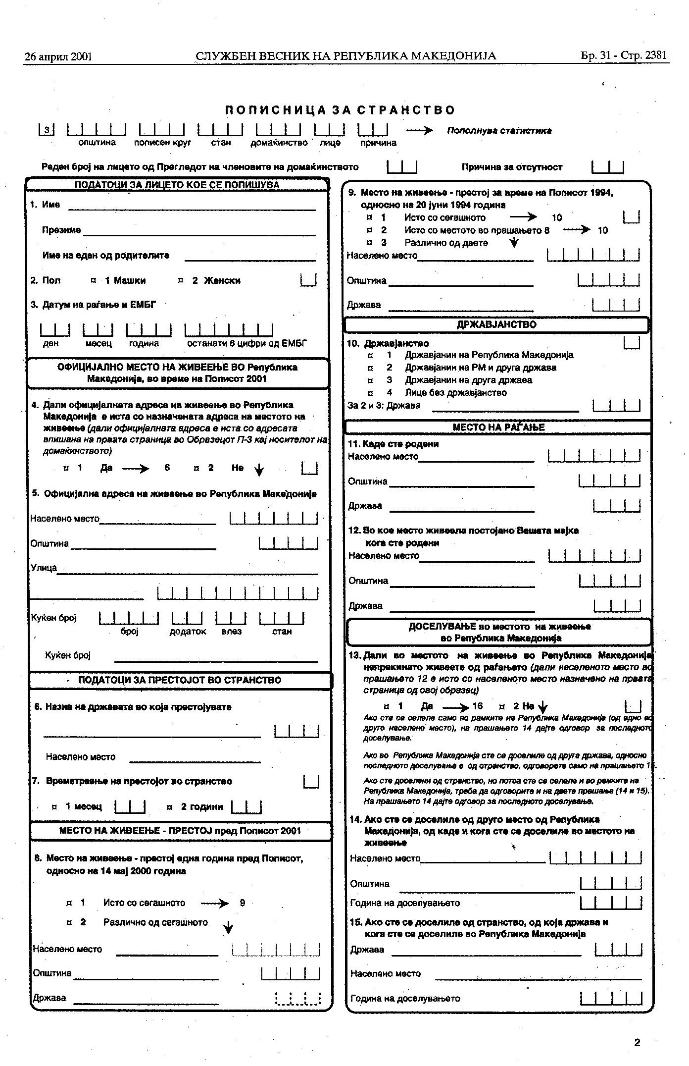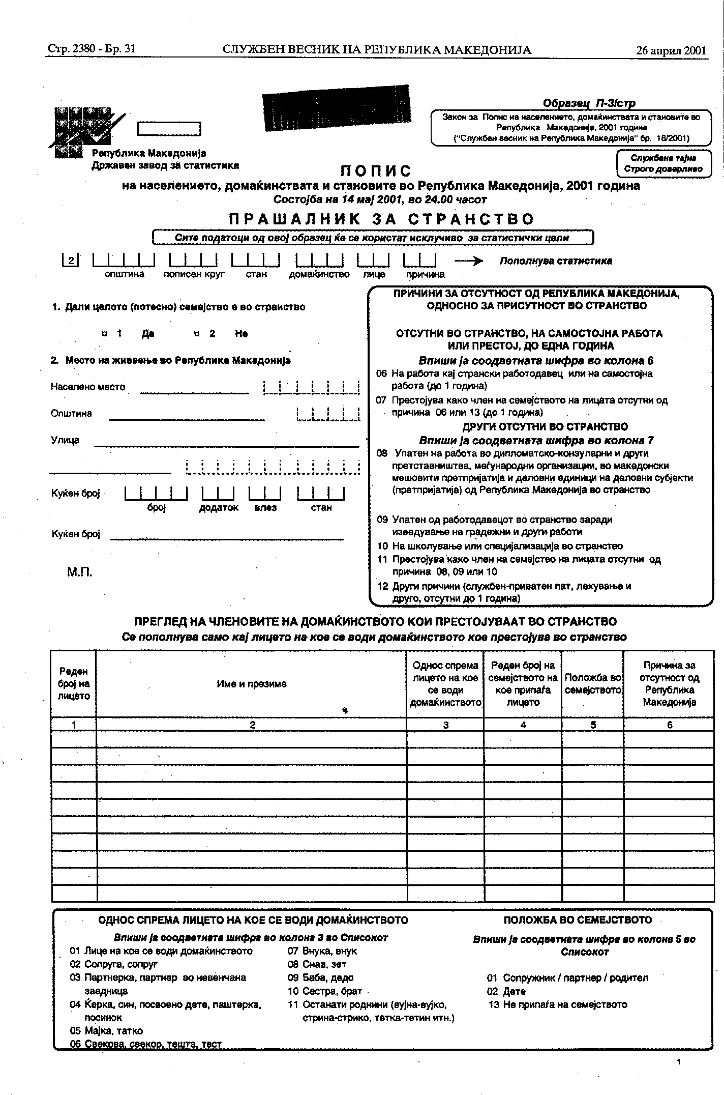 , ȣ, 2001
