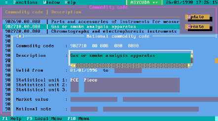 Figure A.11: MODCHQ: Functions: Database Management: Customs Tariff: Commodity Code