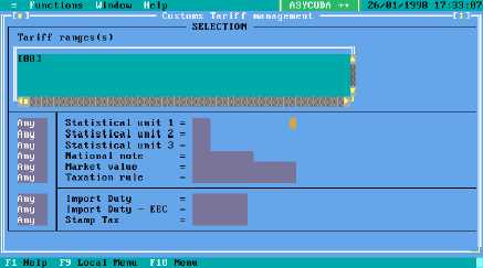 Figure A.12: MODCHQ: Functions: Database Management: Simplified Management: Customs Tariff