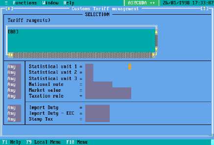 Fig. 10.20 MODCHQ : Functions: Database Management: Simplified Management: Customs Tariff