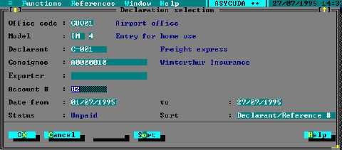 This option allows you to access the server database to extract a list of declarations.