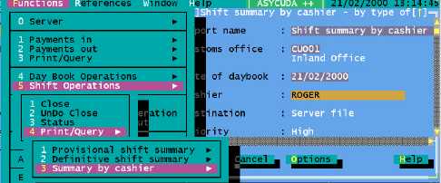 Control and reporting by 'shifts' allows for easy reconciliation in the larger Customs office, working