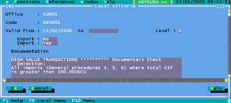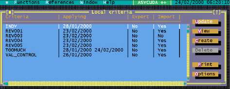 'Criteria' works in the same manner as Tariff Rules. The Local Menu includes the option to insert