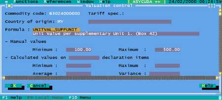 · Formula, press <F8> for a list of codes - See the following section, Value Control Formula;