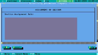 Figure 6.6 MODSEL : Functions: Selectivity management: Selectivity parameters: Import (+ scroll down)
