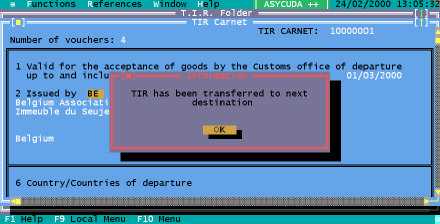 Figure 7.5: Functions, TIR Carnet, Open, F9 Local Menu, Validate Transferred