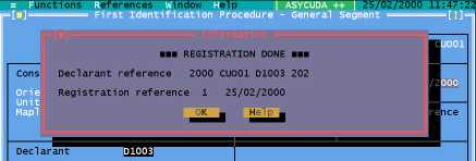 This option allows the user to retrieve a stored FIP by Declarant code and Declarant reference and