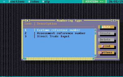 This option allows the initialisation of the Registration number (Customs Reference number). A